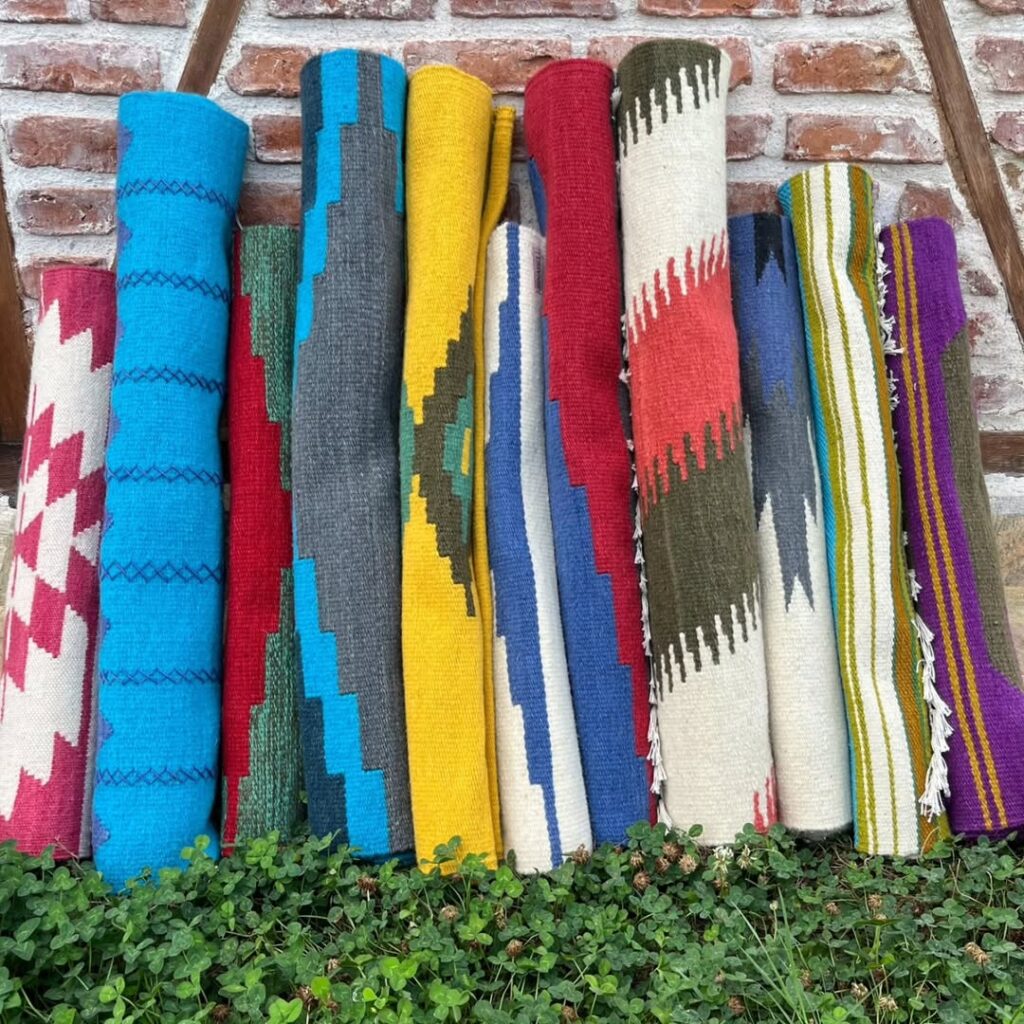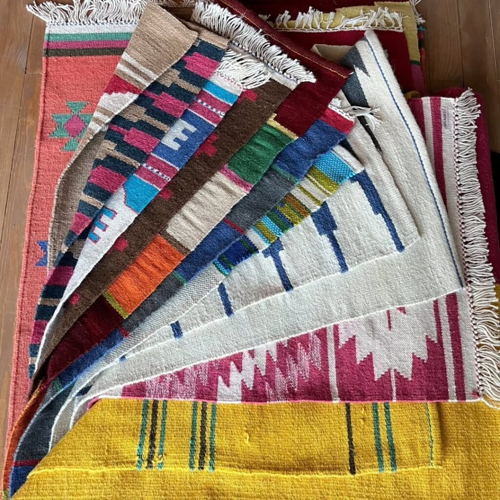 Their commitment to sustainability is evident in every aspect of their work. They use naturally dyed wool yarns, recycled cotton yarns, and surplus textile fabrics cut into strips for their rag weaving. Every product is hand-woven on traditional looms, ensuring that each piece is unique and tells a story of tradition and innovation.