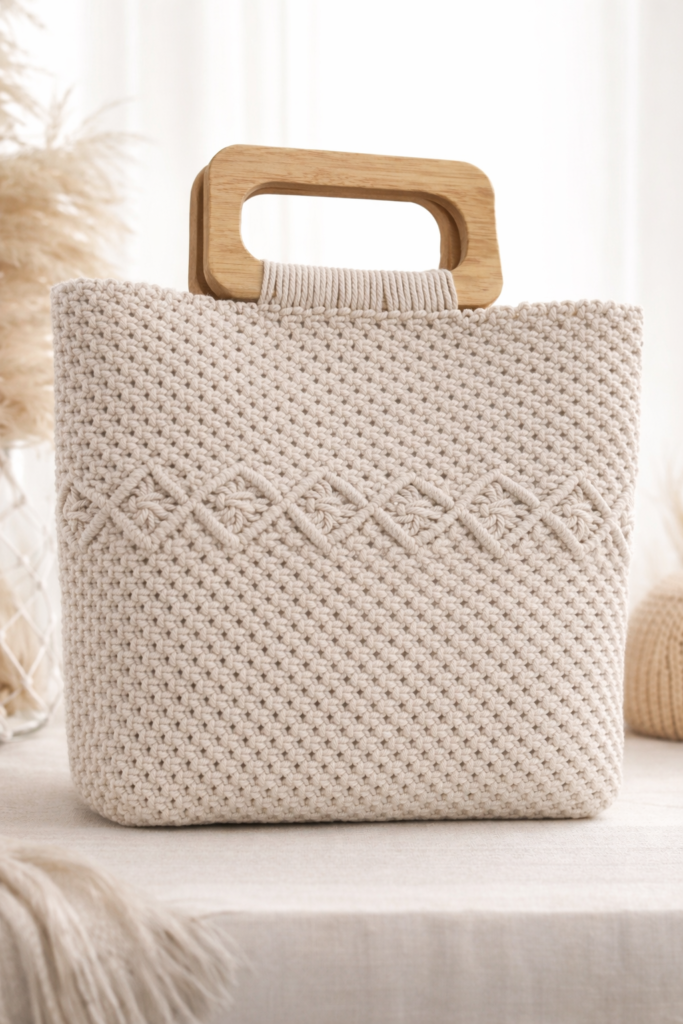 Today, Castellanos’ handmade fiber art is a testament to the power of slow fashion. Her collections feature exquisite macramé handbags, wearable pieces, wall installations, curtains, bassinets, and home textiles – each one a labour of love, crafted through deliberate hand-knotting techniques that honour time and tradition.
