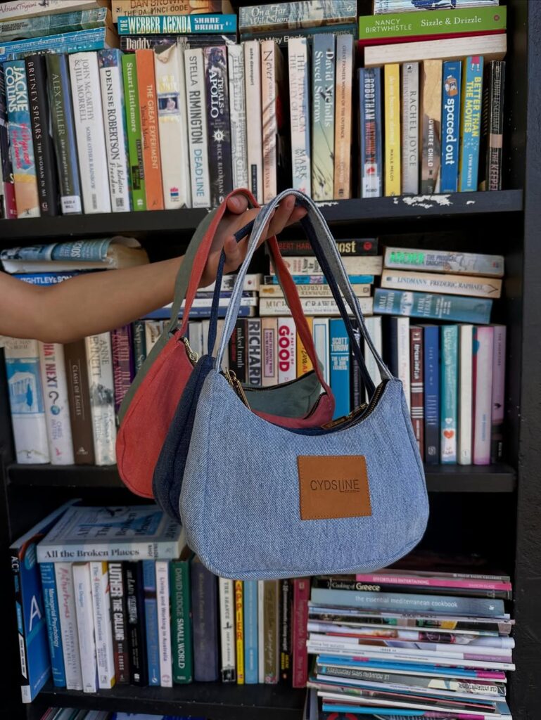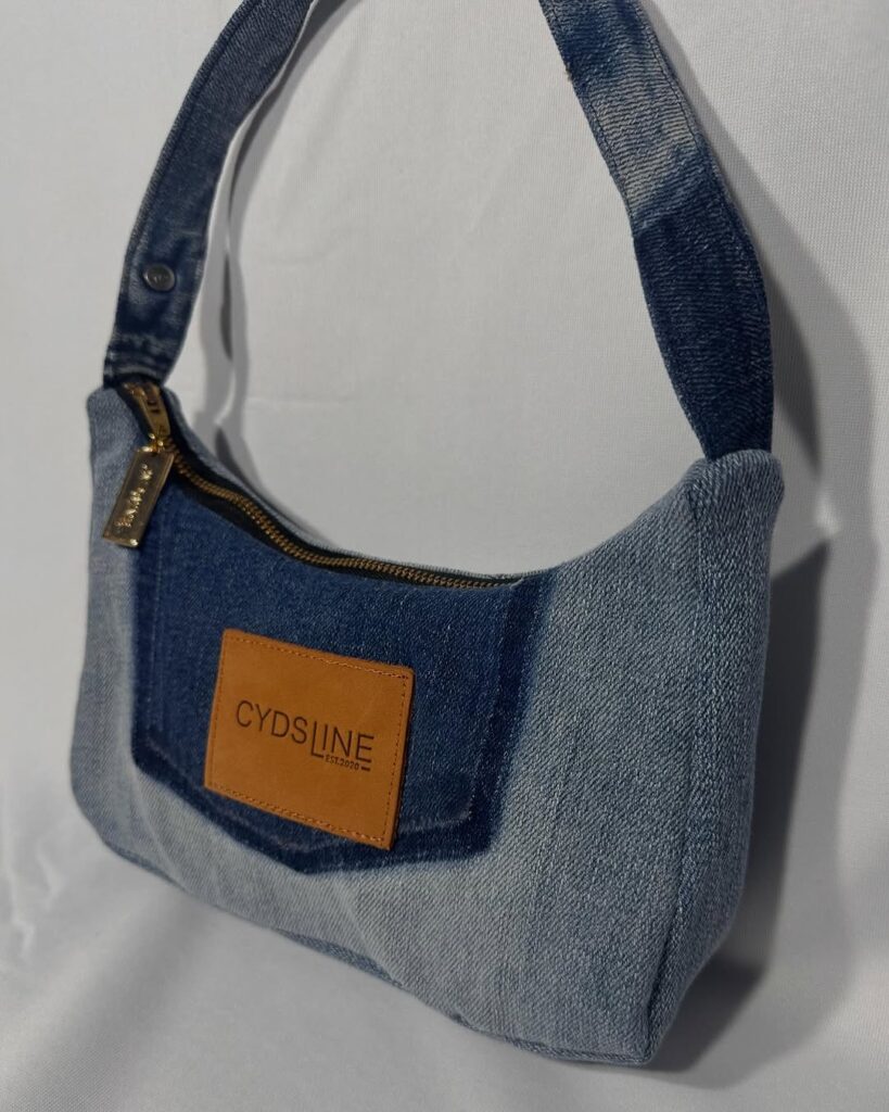 Cydsline’s design process is centered around sustainability and creativity. “We source vintage jeans, often with interesting washes or distressing, and imagine how they can be transformed into something new and remarkable.” The design team works closely with UK-based seamstresses to bring each piece to life. “We focus on creating timeless designs that won’t go out of style,” Cyd says. “Each bag is handmade with love and attention to detail, making it a true one-of-a-kind piece.”